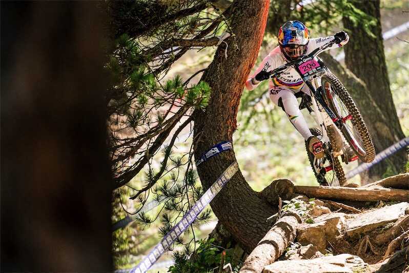 Coureuse cycliste de VTT de descente.